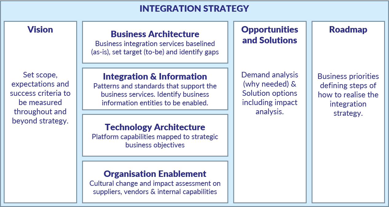 From the Integration Strategy jumpstart you can expect to not only understand what the gap is between existing capabilities and your newly defined strategy, but also how to take the next steps in realising that strategy.